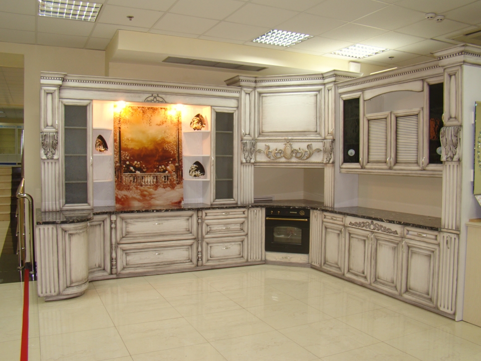 Фасады: МДФ фрезерованные крашенные, серебряная патина