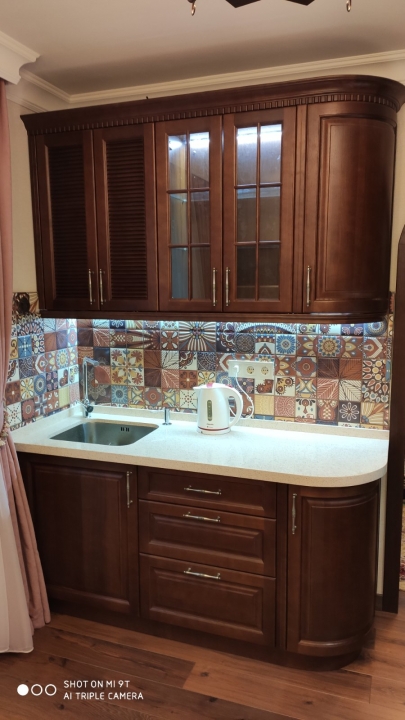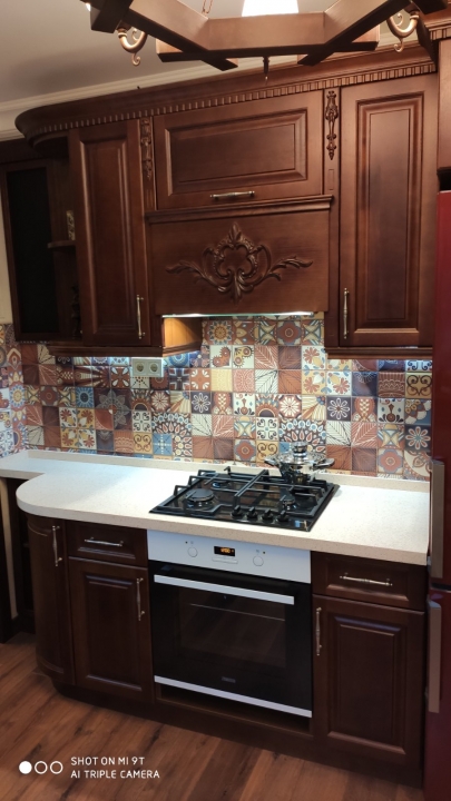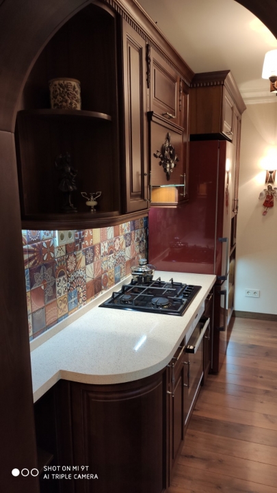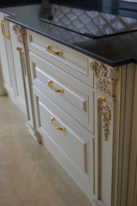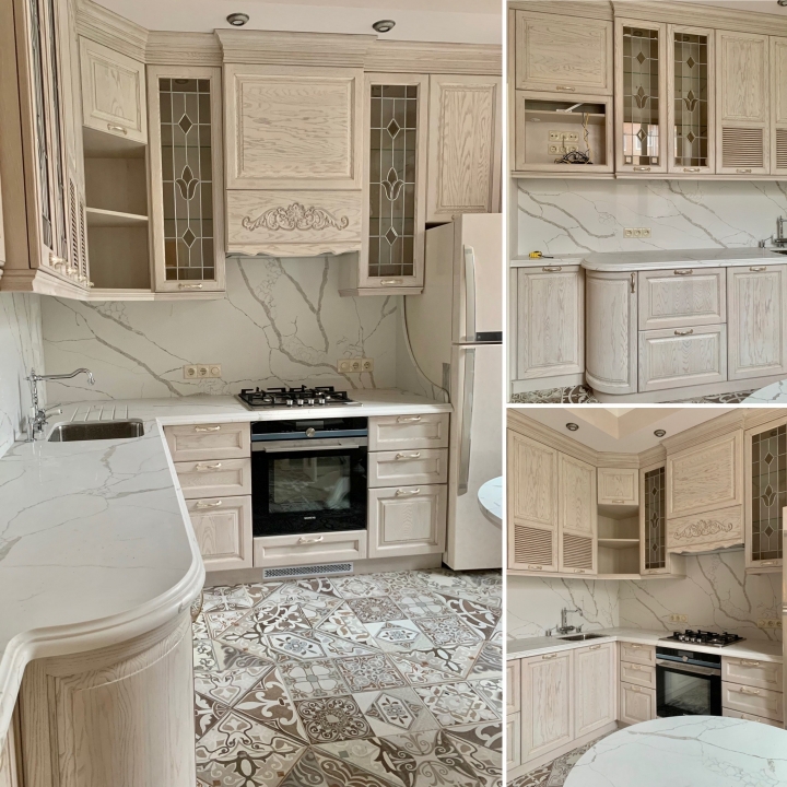 Класична благородна кухня з масиву ясена. Стільниця - кварцит. Різьблений декорФурнітура Blum