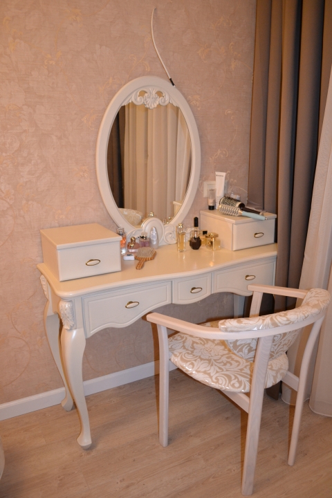 Вишуканий білий макіяж з пуфом і дзеркалом Масив вільхи