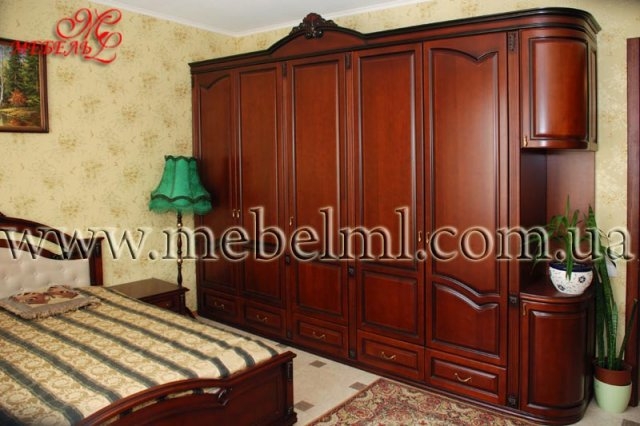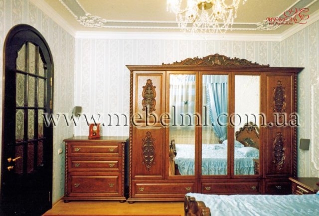 Класичний комплект меблів в спальню з масивом вільхи Шафа ліжко, макіяж столик. тумбочки