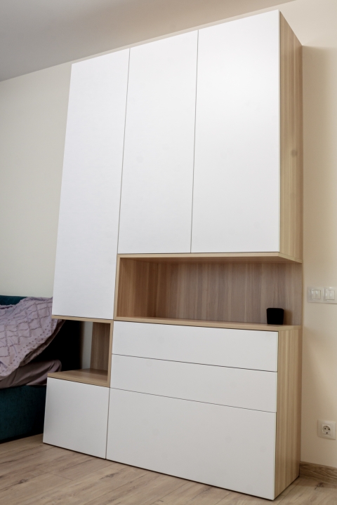 Комната мальчика. Раздвижная Система. Дсп Бетон светлый, Дуб гранж песочный. Белый перл. Фурнитура Blum