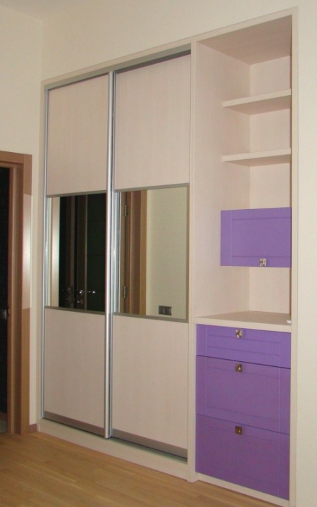 Шафа розсувна система ADS Вставка дзеркало та шкіра. Фурнітура BLum