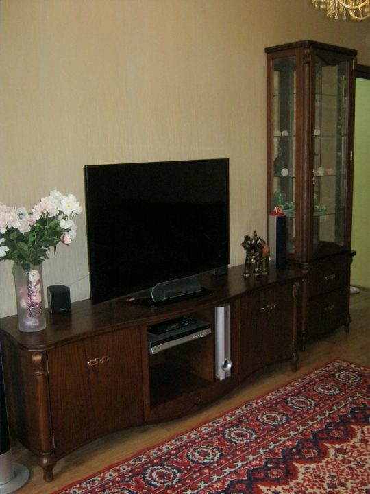 Вітальня виконана з масиву вільхи. Тумба ТБ. і дві кутові вітрини Колір Горіх