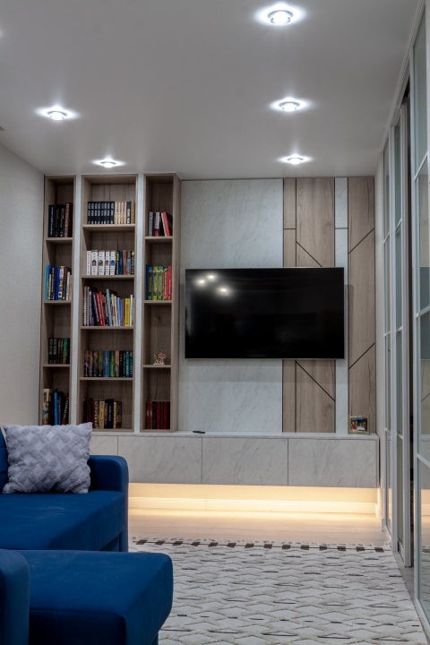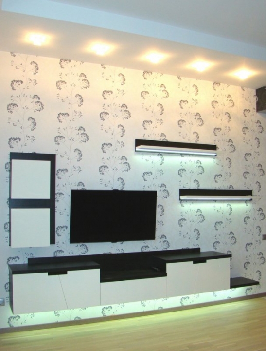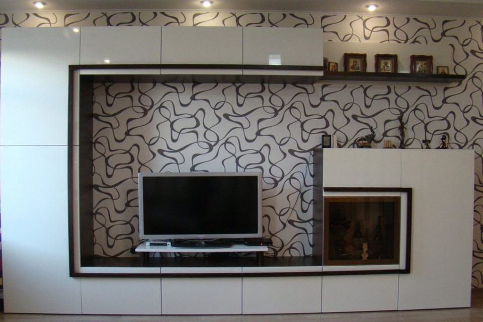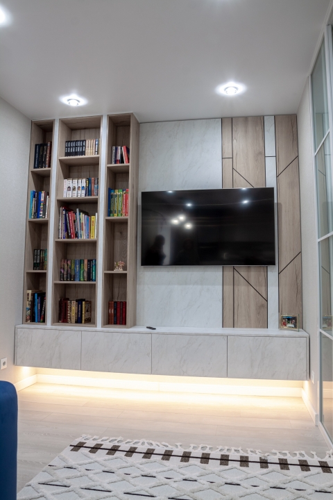 Зона ТВ з каміном. МДФ фарбований. ДСП Kronospan. Фурнітура Blum