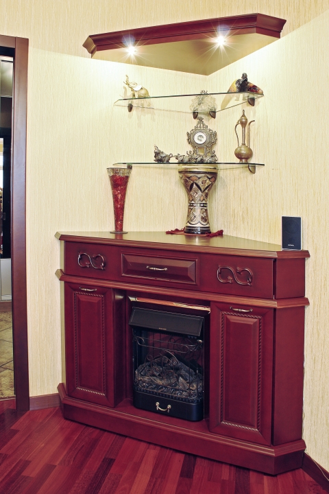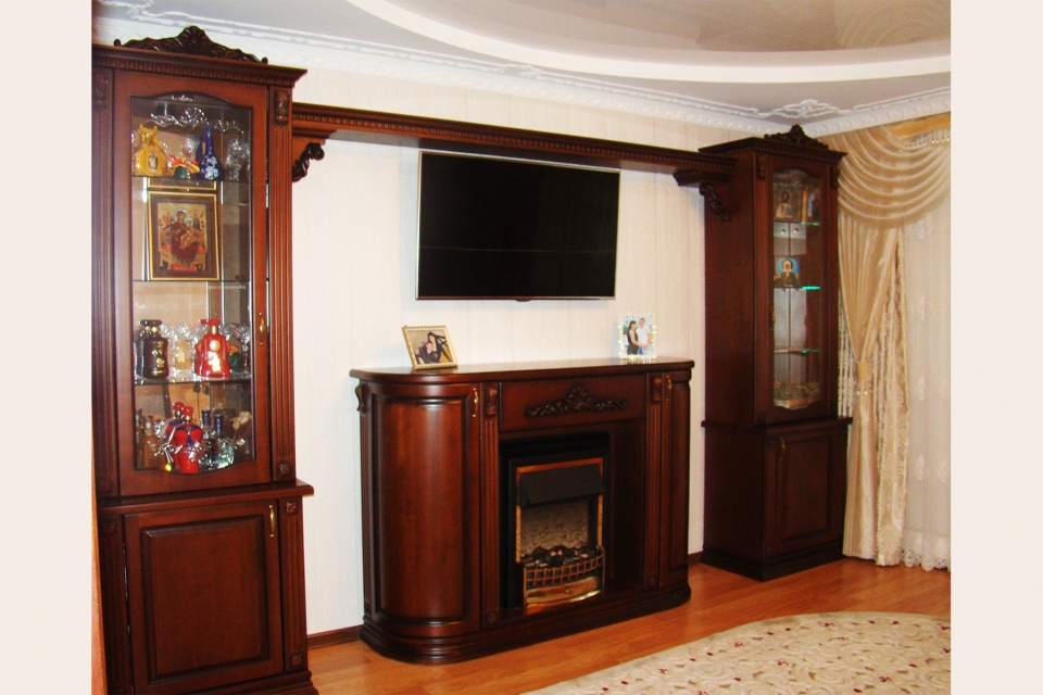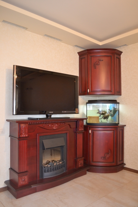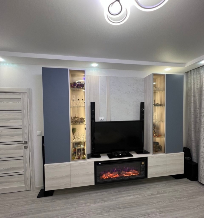 Зона ТВ з каміном. МДФ фарбований. ДСП Kronospan. Фурнітура Blum